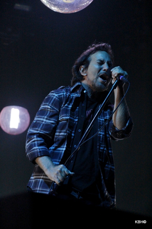 Pearl Jam graced the stage in the darkest of light cues, but with enough energy to quickly get the crowd standing.